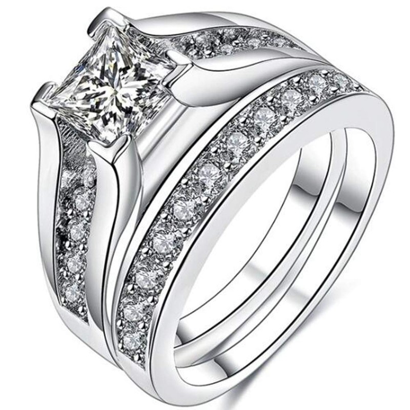 JUDE 925 Sterling Silver Princess Cut Wedding Engagement Bridal Ring Set (J)