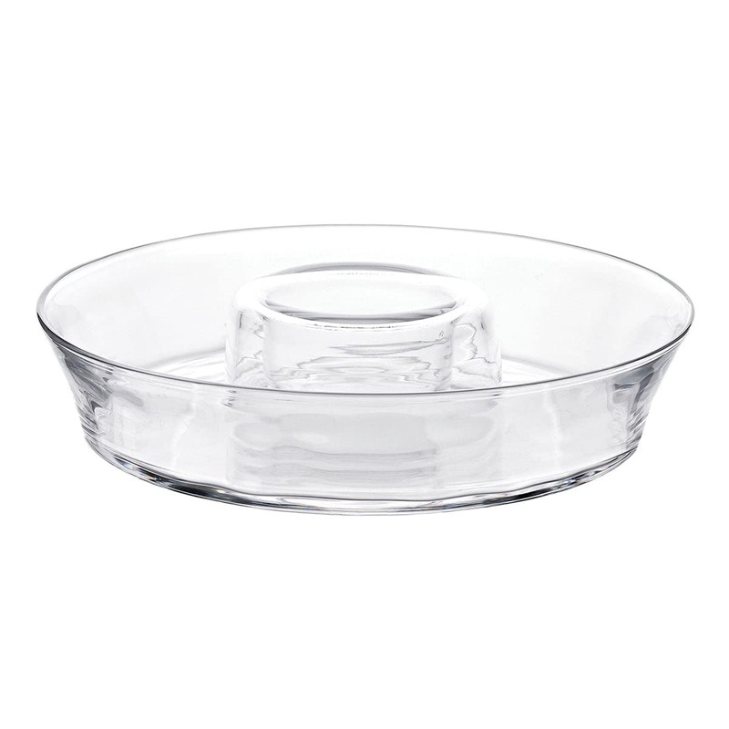 - Keep it chic with this chip and dip server that elevates the humble to something a bit more special. Simple, textural lines in handsome mouth-blown glass, this piece allows you to easily present your favorite chips and dips with a splash of elegance.