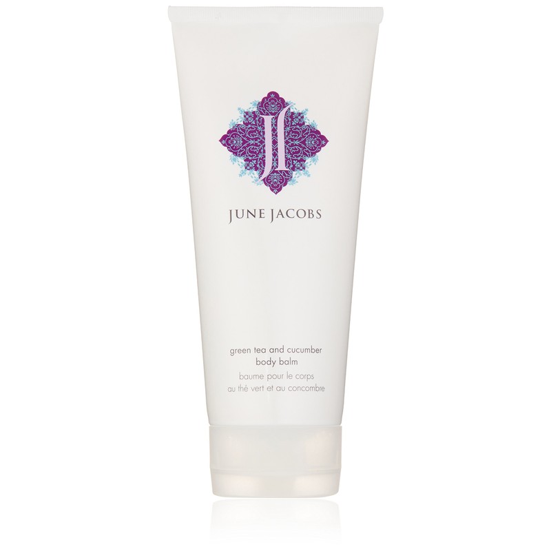 Green Tea and Cucumber Body Balm from June Jacobs restores skin back to health with soothing, luscious moisture. Crisp, aromatic cucumber delivers vital nutrients while rich oils of jojoba, sunflower, sesame and squalene unite to restore a protective barrier of moisture and green tea offers antioxidants and hydration. Skin becomes soft, silky, supple and radiant.