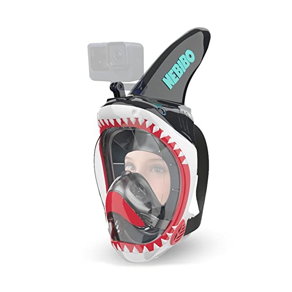 - 🦈 SHARK FULL FACE SNORKEL MASK EXCLUSIVELY BY NEBIBO. Our mission, create safe and unique snorkeling gear for kids. This snorkeling set, inspired by the movie JAWS, offers kids a shark snorkel to safely explore underwater, and learn to swim at the same time. Look like a shark! After two years of development, we are excited to present a completely redesigned full face snorkel mask. This kids snorkel set, is intended for ages 6 and above. Get your very own NEBIBO today.