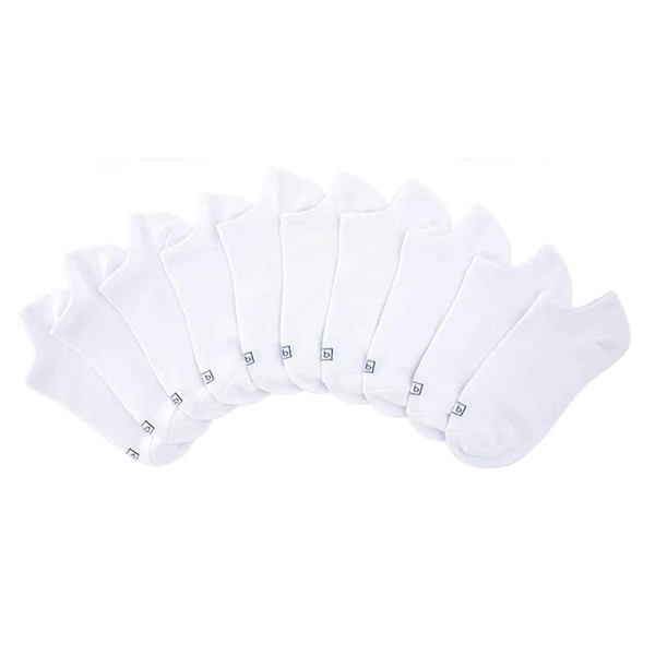 K. Bell Women's No Show Socks, White, 10 Pairs