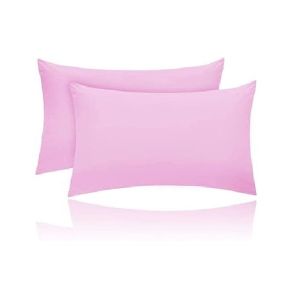 Kanak Pillowcase 2 pack Polycotton Pillow case cover 50x75cm - Pink Plain Dyed Housewife Pillowcases with Envelope Closure