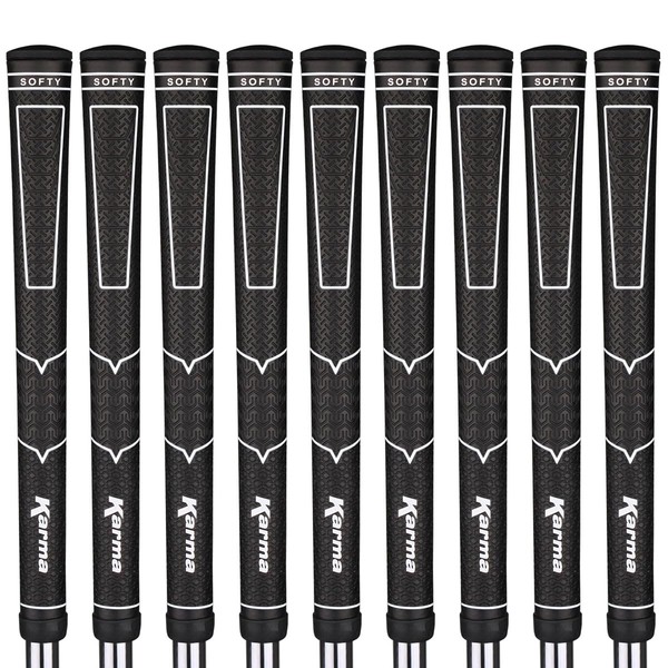 Karma Softy Standard Golf Grips (9 Pack), Black/White Comfortable Polyurethane