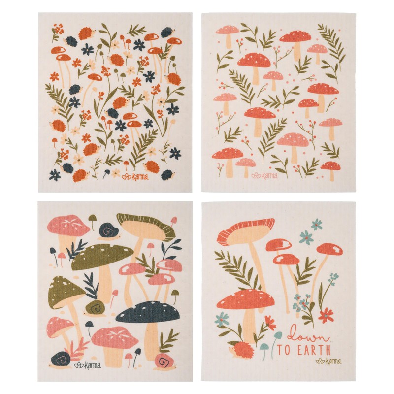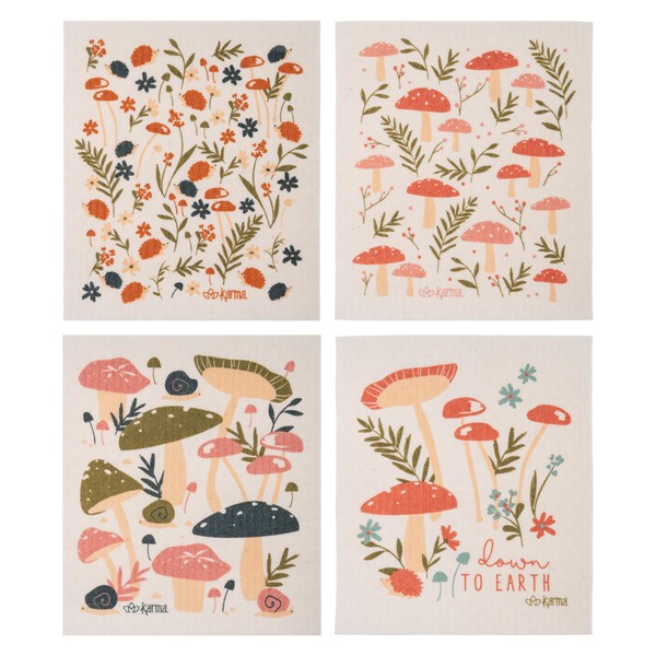 Karma, Swedish Dishcloths for Kitchen - 4 Pack, Reusable, Washable and Biodegradable Dishcloths, Mushroom
