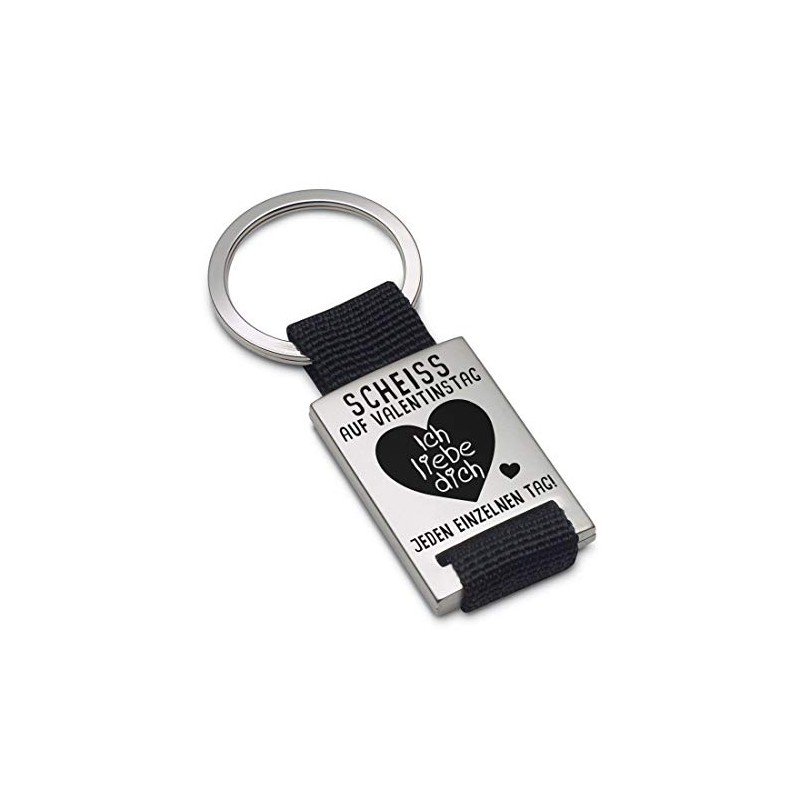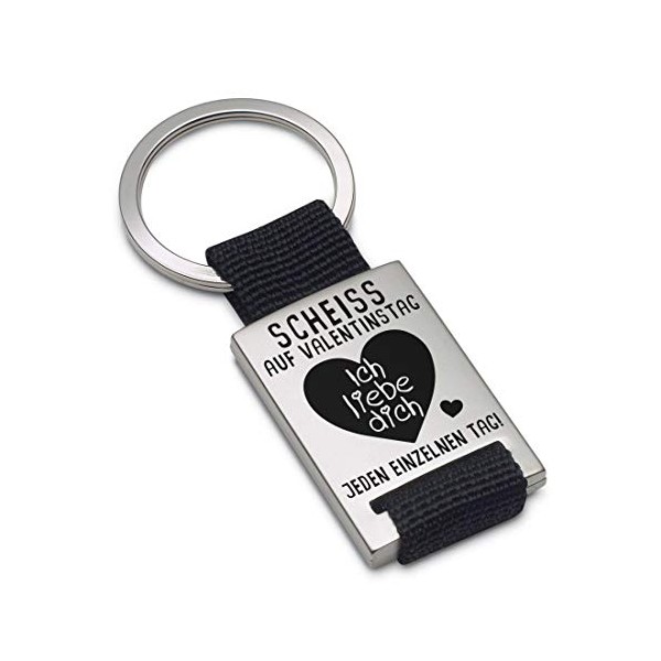 Key Chain: engraved with “Scheiss auf Valentinstag!” Black