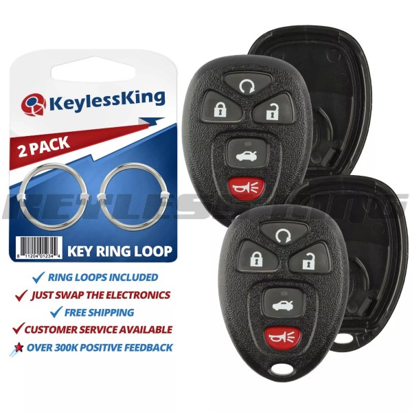 KeylessKing* 2 Replacement Remote Start Key Fob Shell Pad Case for 2006-2013 Chevy Impala