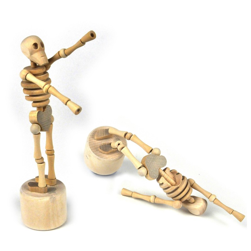 - Press button on the base and watch the bones collapse
