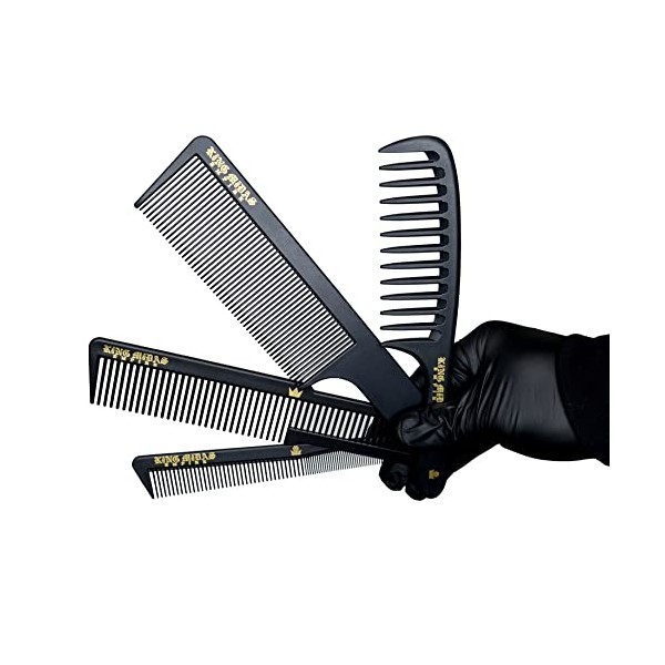 - The King Midas professional barber & hairstyling comb set includes 1 Taper Comb, 1 All-Purpose Cutting Comb, 1 Blending (Flat Top) Comb, & 1 Wide Tooth Styling Comb. This set provides everything you need to execute a professional hair cut.