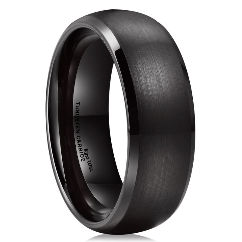 King Will Black Domed Tungsten Ring 8mm Brushed Matte Finished Wedding Band Size 10