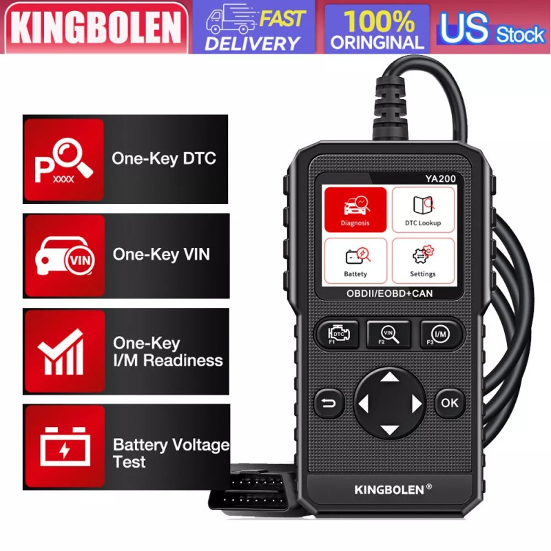 KINGBOLEN YA200 Enhanced Car obd2 Scanner Full OBDII Function For Check Engine, Read and Clear Fault Code, Mode 6, O2 Sensor Test, Battery Test, EOBD OBDII CAN Diagnostic Scan Tool for Most 1996 & Newer Cars