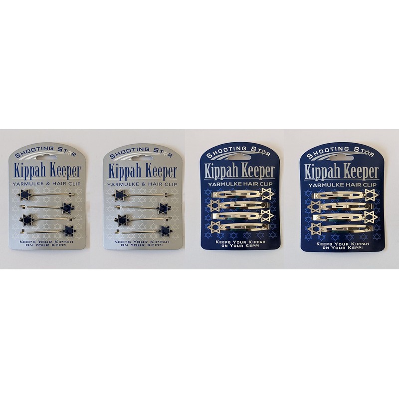 Kippah Keeper Yarmulke & Hair Clips - Combo Pack (2 Bobby + 2 Silver)