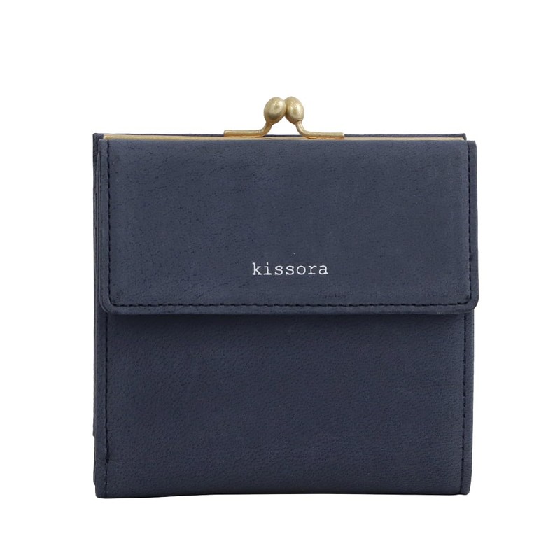 Kisora KIAS-010 Trifold Wallet, Rustic, Genuine Leather, navy