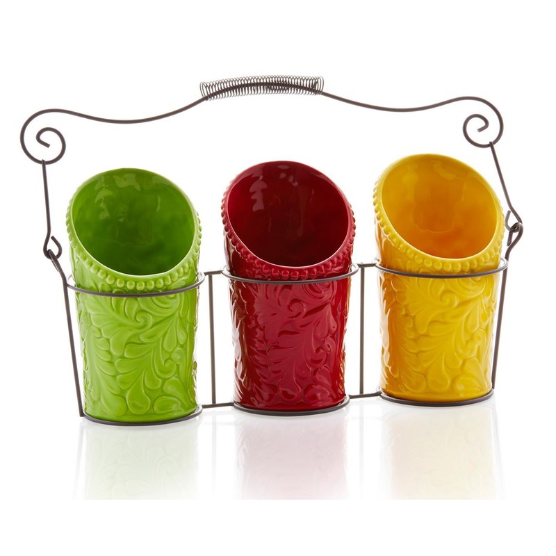 • Set of 3 ceramic kitchen utensil holders with metal caddy - Perfect for keeping your utensils, silverware or flatware neatly organized