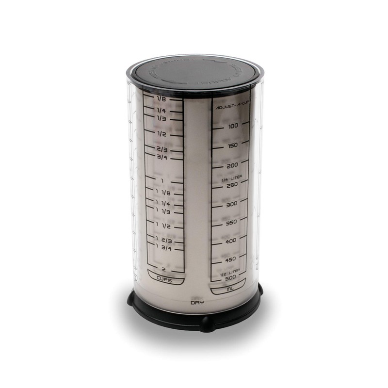 - ADJUSTABLE MEASURING CUP Measure liquids, dry, and semi-solid ingredients with ease using one convenient measuring tool with standard and metric unit markings including cup, ounce, pint and millimeter up to 2 cups, 16 ounces, etc.