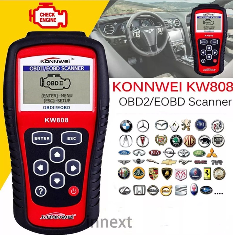 The KW808 OBDII/EOBD Scanner supports all nine OBDII test modes on all OBDII compliant vehicles to enable technicians to accurately diagnose even the toughest problems. Sophisticated yet easy-to-use, this ergonomic scan tool displays live O2 sensor test data and reads live PCM data stream. It features multilingual menu, large easy-to-read backlit LCD screen and displays DTC definitions on unit screen. This scanner retrieves vehicle information, identifies pending codes, views freeze frame data and easily determines the cause of the Check Engine Light. This scanner comes with built-in OBD-II DTC lookup library and is software upgradeable via internet. It performs modules present test, reads, stores as well as playbacks live sensor data and prints data via PC.