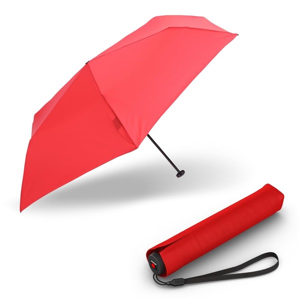 KNIRPS - The original - For all. The Knirps I.030 Small Manual is the ideal umbrella for people who love uncomplicated products. As a brand of the century, we implement our years of experience by producing the highest quality materials with the greatest benefit for our customers. Our smallest umbrella combines the three most important features of a pocket umbrella: small, ultra-light and an umbrella canopy size suitable for one person. A comfortable and compact pocket umbrella for everyone. It also comes with a matching colour protective cover that also has a reliable zip. With a closed length of only 21 cm, this Knirps umbrella mini fits almost in any bag or can even be stored in the chest pocket. This makes it the perfect companion in everyday life and especially when travelling. In addition, it has a practical hand strap on the handle and thanks to its clever construction stands for smooth manual opening and closing. The combination of the low weight of 115 g - lighter than a smartphone - and the 6 aluminium struts give the necessary stability, which can withstand even wind gusts. Thus, our pocket umbrella is storm-proof - tested at 100 km/h in a wind tunnel. Despite its slim format, the mini pocket umbrella scores points with a pleasantly large umbrella roof diameter of 90 cm and is a universal companion for every day due to its timeless colours. A perfect everyday umbrella designed by the inventors of the folding umbrella. Convince yourself of the original
