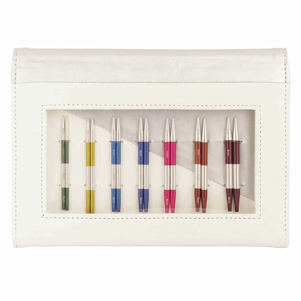- White and silver-coloured faux leather case with 7 pairs of interchangeable needle tips in all sizes: (3.00, 3.50, 4.00, 4.50, 5.00, 5.50 and 6.00mm) The set also includes 4 cables: 2 x 40 cm and 2 x 50 cm, 8 end caps, 4 cable keys and 1 set of cable connectors.