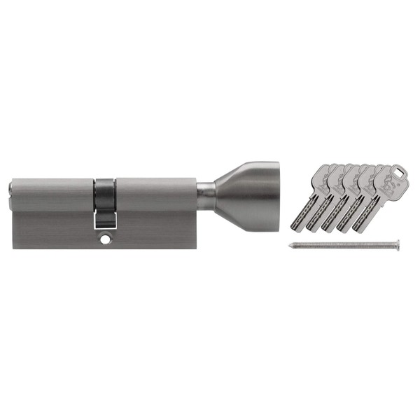 - 1 x single locking knob cylinder 90 mm 45/45 - locking pins: 5 - material: coated brass
