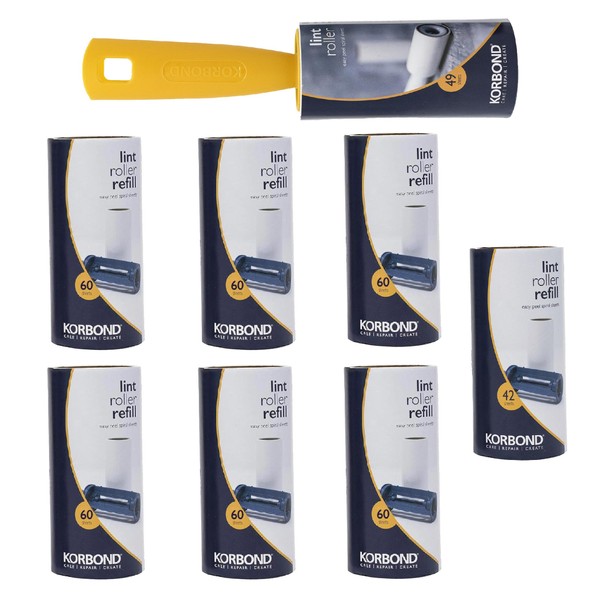 Korbond Lint Roller and Refill Set - 451 Sheets - x 1 Lint Roller plus x 8 Refill Rolls - Remove Pet Hair from Any Surface