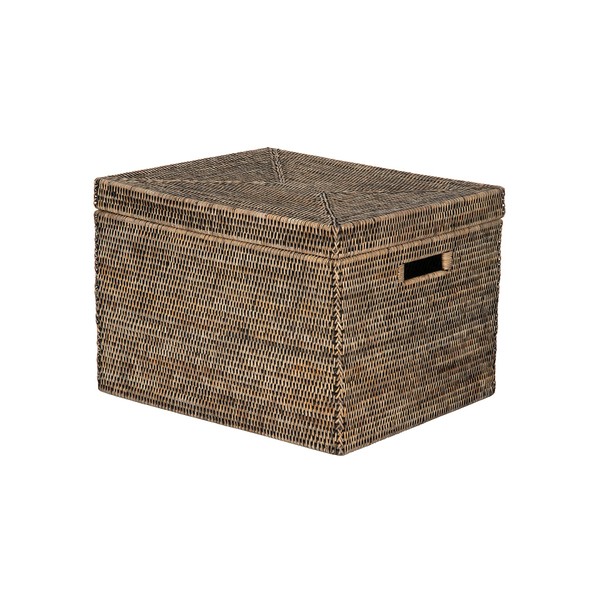 Kouboo La Jolla Rattan Rectangular Storage Box, Black-Wash