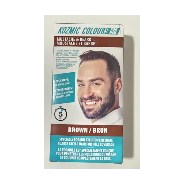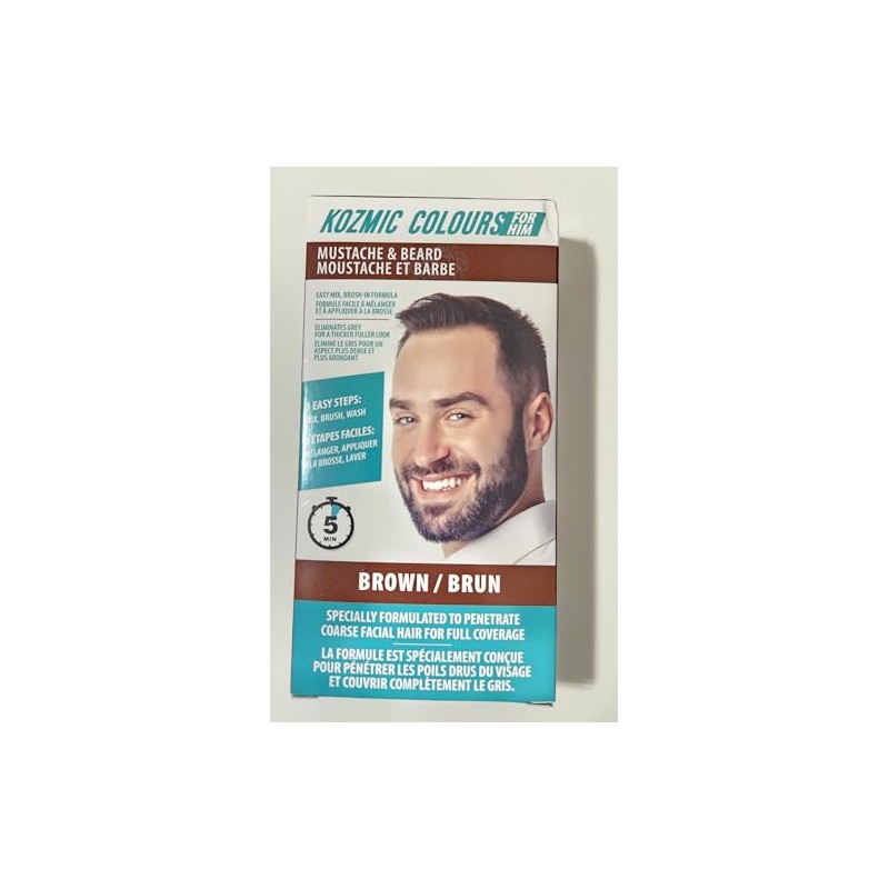 Kozmic Colours Mustache & Beard Dye for Men, Brown, Easy Mix Brush-in Formula, Eliminates Grey for Fuller Look, 5 Minute Application