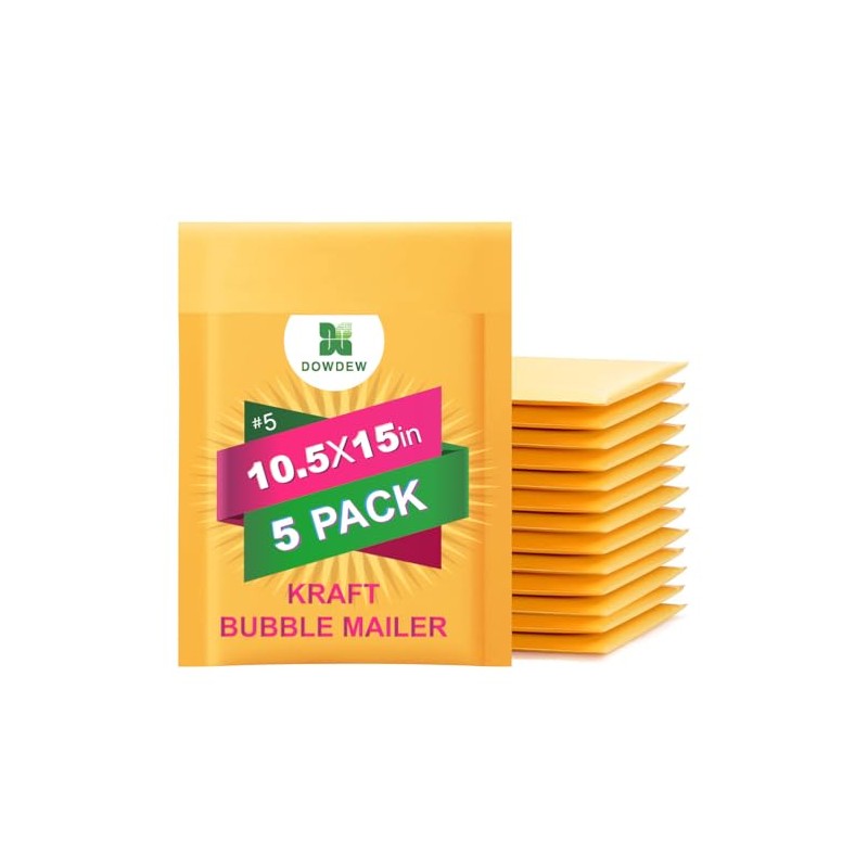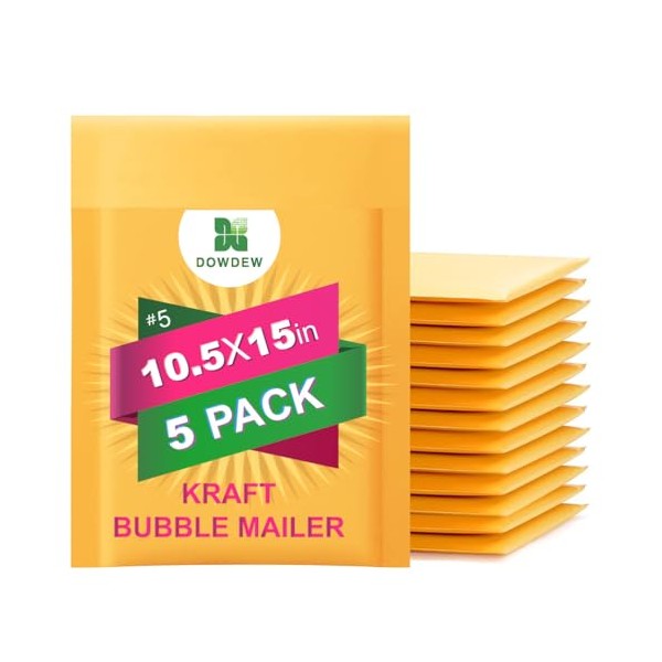 Kraft Bubble Mailers [5 Pack] Mailing Packing Envelopes #5 (10.5" x 15")