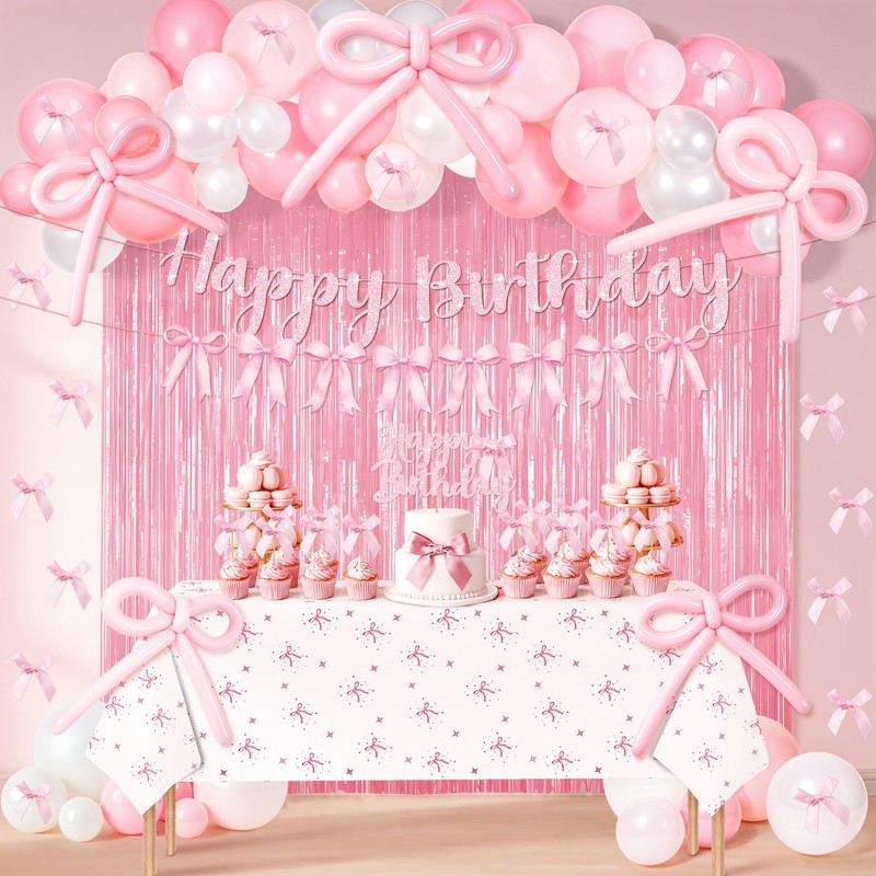 Kriyokiaa pink bow coquette birthday decorations