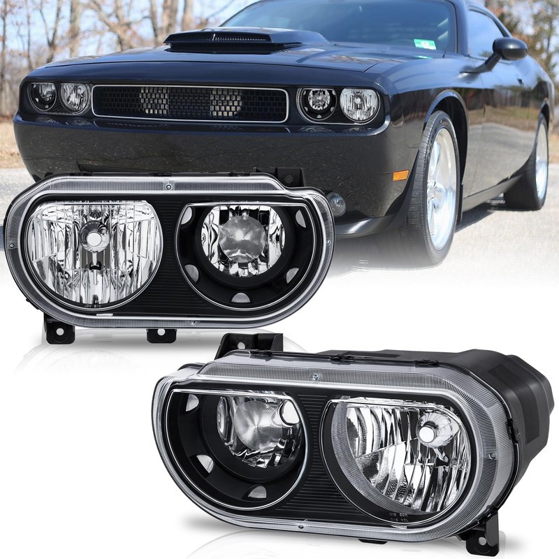KUIPERAUTO Headlights Assembly Compatible for 2008-2014 Dodge Challenger Black Housing Clear Reflector
