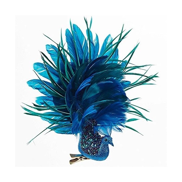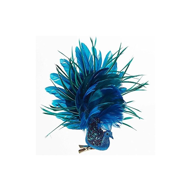 - Glittered Blue Peacock With Feathery Tail Clip-On Ornament