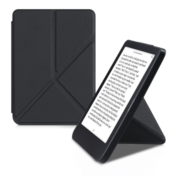 - Origami stand: the faux leather flip case in black is cleverly designed. Different folds allow the case to be folded like an origami and thus create an elegant stand angle for your e-reader.