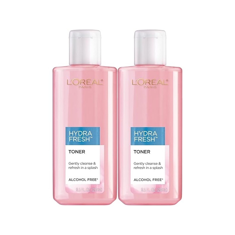 L'Oreal Paris Skincare HydraFresh Toner Face Toner with Pro-Vitamin B5 for a Smoother, Brighter Complexion, 2 Count