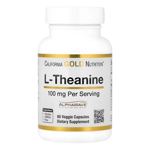 El suplemento L-theanina, 100 mg, de California Gold Nutrition contiene AlphaWave una forma patentada de L-theanina altamente purificada en cápsulas vegetales.