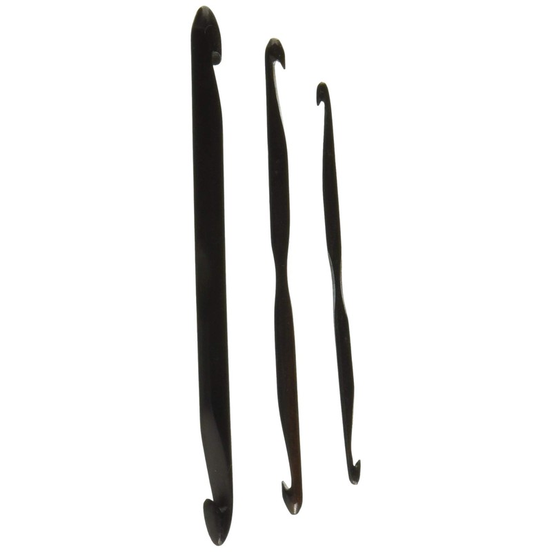 Lacis Double End Crochet Hook with Center Indent, Ebony, 3-Pack