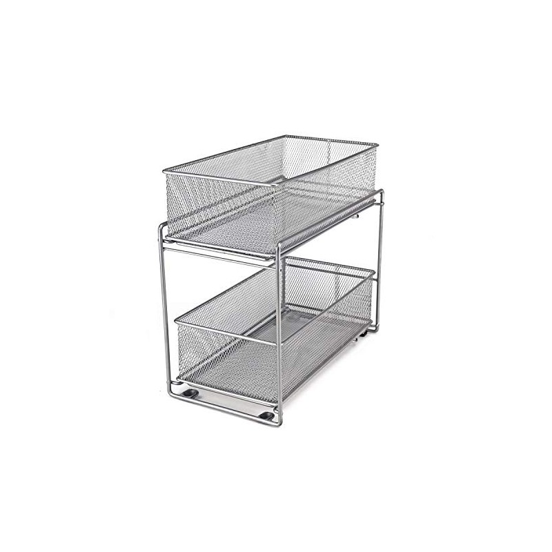 LaCyan Mesh Sliding Baskets Stackable Cabinet Organizer Pull Out Drawer for Kitchen Under Sink Storage, 2 Tier