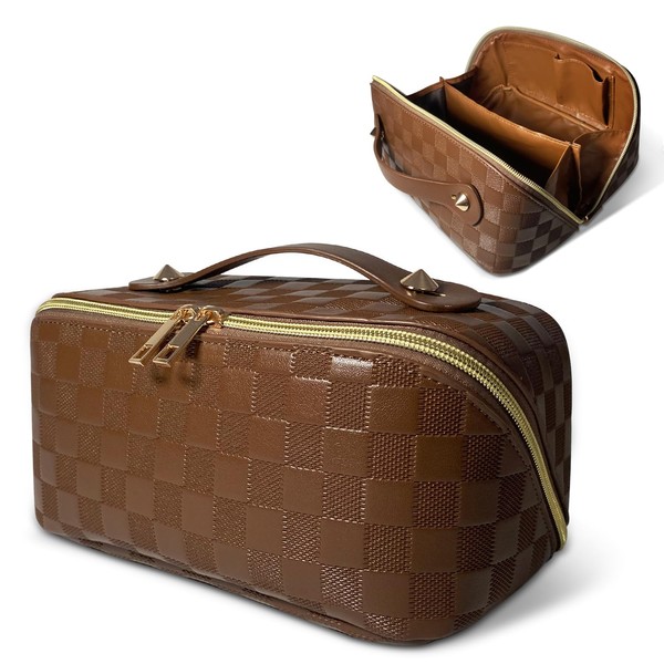 LAhair 化粧ポーチ 小物入れ ポーチ コスメポーチ メイクボックス トラベルポーチ 大容量 チェッカー レディース バッグ ポータブル シンプル おしゃれ 軽量 撥水加工 多機能 持ち運び 防水 仕切り付き トラベル 旅行 出張 軽量 棕