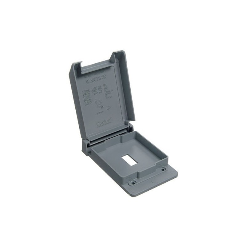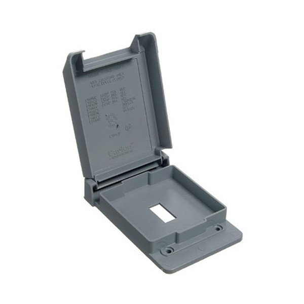 The Carlon Single Switch Cover is weatherproof (gaskets included) and is for exposed applications. It features a single switch cover for single switches. The color is gray. It is non-metallic and non-conductive and will not rust or corrode.