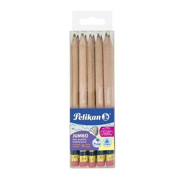 - Caja con 10 lápices de grafito #2HB con cuerpo de madera triangulares jumbo.
