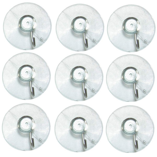 Features & Benefits: Clear plastic suction cups set: 10 Packs of suction cups (with Removable hooks), 1 5/8" (41 mm) in diameter, large enough for you to hang some party decorations, signs, hold towels, and more. Plastic material is soft and durable to use many many times over. Easy to use: Clear suction cups are easy to stick and remove, keep the place clean and dry, stick it easily. To remove the cup, simply pull up on the release tab to break the suction. You can clean the suction cup by soap water, and dry it with lint-free cloth or hair drier. Wide range of uses: These sucker pads are good for decoration or organization, such as, home and holiday decoration, fixing soap dish, bathroom supporter, sink strainer, hanging assorted signs and small lights on windows during the holidays. Specifications: Suction cup color: clear Hook: Chrome metal (Removable) Material: plastic Diameter: 1 5/8" / 41 mm Maximum load for each: 5 lbs Quantity: 10 packs Instructions: 1. Select a clean and smooth surface on which you will mount the suction cup, such as glass, metal, ceramic tile, plastic or similar surfaces, not for hot place. 2. Make the surface clean, dry, and under 40 degrees. 3. Press suction cup onto surface to release any air from underneath suction cup. 4. Test objects for security to assure suction is secure. Package includes: 10 x Suction cups Note: It can be helpful to periodically "burp" the suction cup to release any air that may become trapped underneath the cup for firm use. The load is 5lbs for each (maximum)