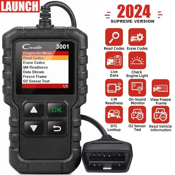 [ View Freeze Frame/Live Data Stream/ O2 Sensor/ Evap System test/ On-Board Monitor Test] : LAUNCH Creader 3001 is one useful and economic OBD2 FULL FUNCTION automotive diagnostic tool, support read live data for engine system, quick detecting vehicle failures, saving you the trips to your mechanic.