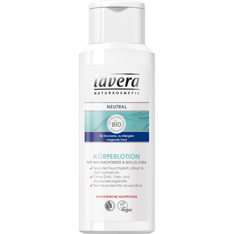 - Lavera neutral body lotion for dry skin prone to allergies (neurodermatitis) prevents further moisture loss. It absorbs quickly, soothes and supports the skin's own regeneration in a natural way.