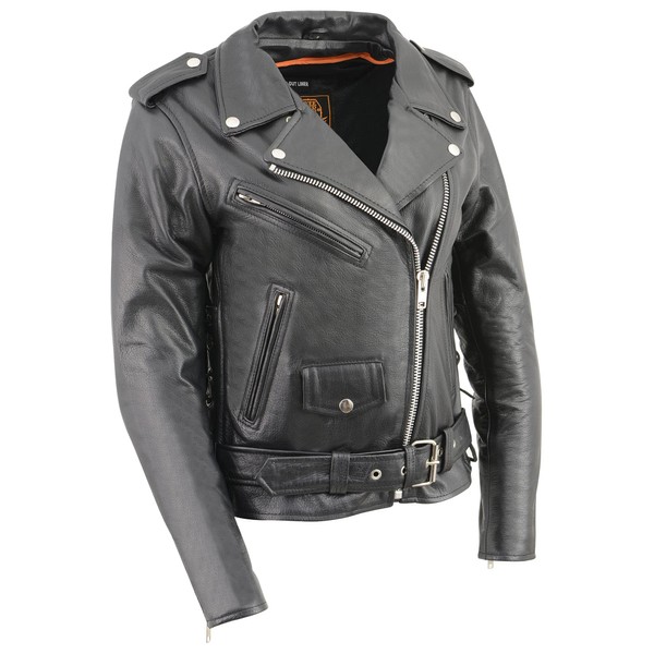 LC2700 Ladies Black Classic MC Premium Leather Jacket w/Side Laces (Medium)
