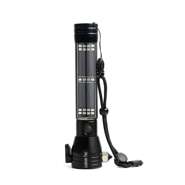 Lebote Car Flashlight Solar Power Tactical Flashlight Multi Function Flashlight Bright LED Emergency Torch Light With Safety Hammer Seat Belt Cutter Compass For Hiking Camping
