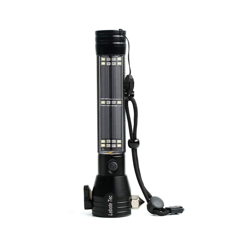- 3.Multi function:【Various Lighting Modes】【Window Breaker】【Seat Belt Cutter 】【Warning Alarm Horn】【Compass】【Powerful Magnet On The Side】【 Adjustable Lighting Range】【2000 mAh Solar Rechargeable Emergency Power Bank】