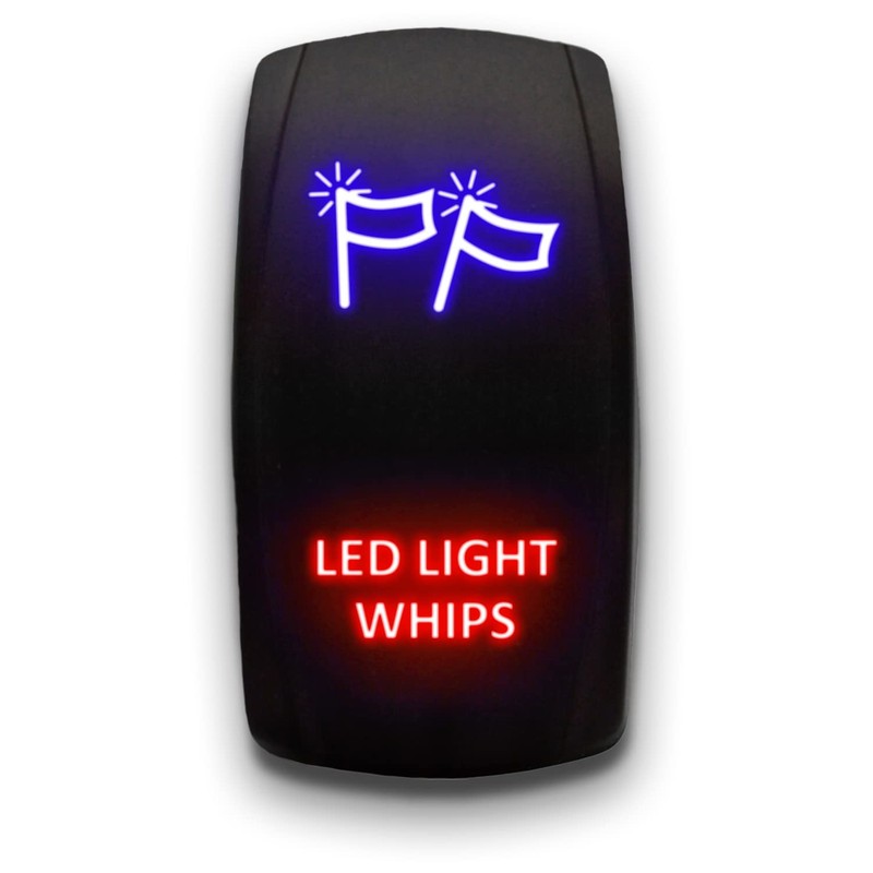 LED Light Whips - Blue/Red - Laser Etched Toggle Switch 20A 12V - Vertical Rocker Switch 5-Pin DPST