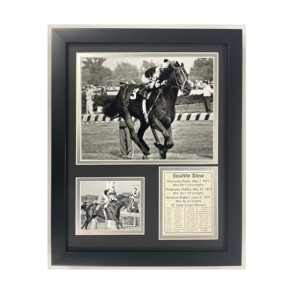Legends Never Die Championsip Racehorse Collectible Memorabilia | Triple Crown Racehorses | Framed Photo Collages | 12"x15" (Seattle Slew)