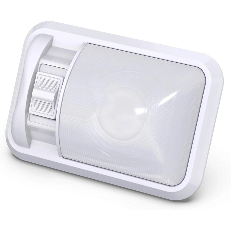 - New Leisure LED RV Interior Ceiling Frosted Single Dome Light Fixture with ON/OFF Switch Design 300 LUMEN in Natural White is the replacement for RV, Trailer, Camper, and Boat’s. It arrives with the following; Leisure LED Frosted Single Dome Ceiling Light Fixture with fixed wires, (2) wiring nuts, (4) Screws to complete installation.