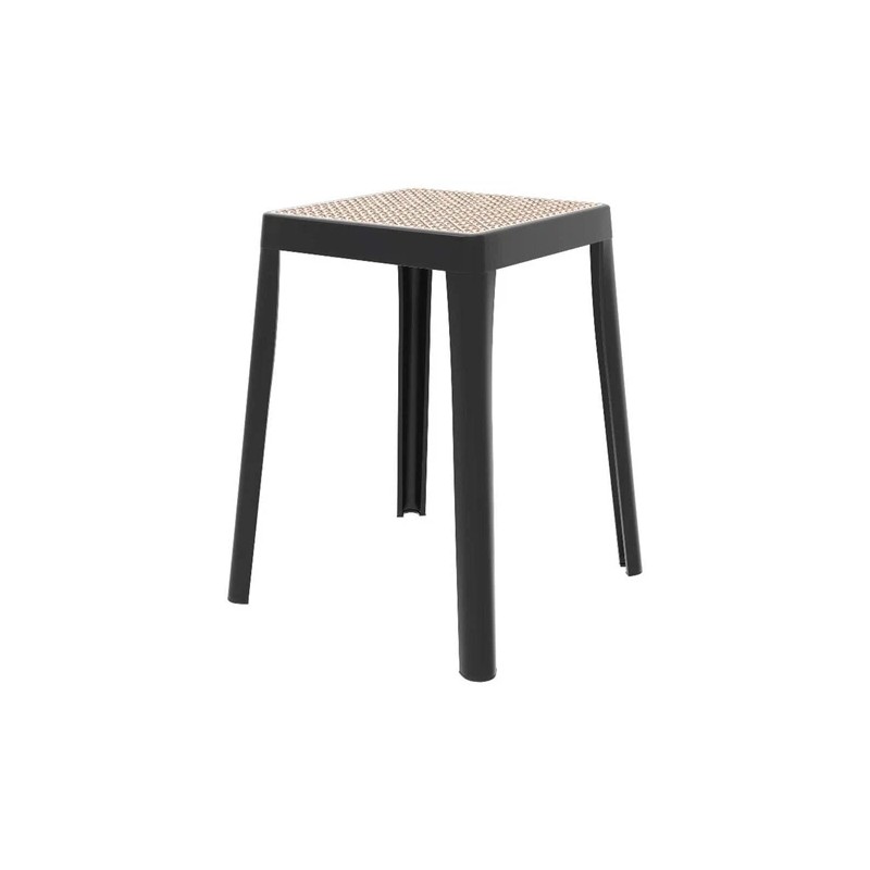 LeisureMod Tresse Stackable Square Plastic Dining Stool with Wicker Top Black