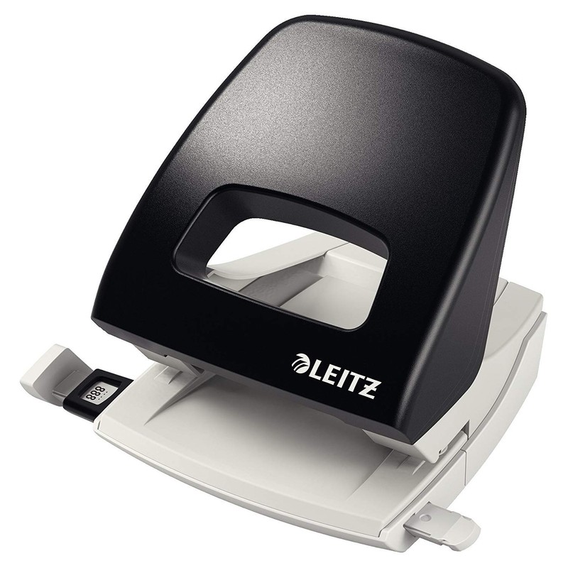 - Content: One Leitz hole punch NeXXt range, black, 50050095, dimensions (W x H x D): 104 x 103 x 137 mm, two hole punching, weight: 322 g