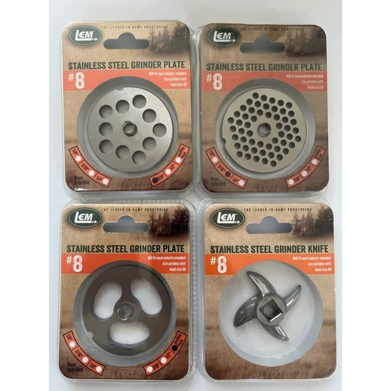 LEM #8 Stainless Grinder Accessories - Knife, 3/8", 3/16" and Stuffing Plate