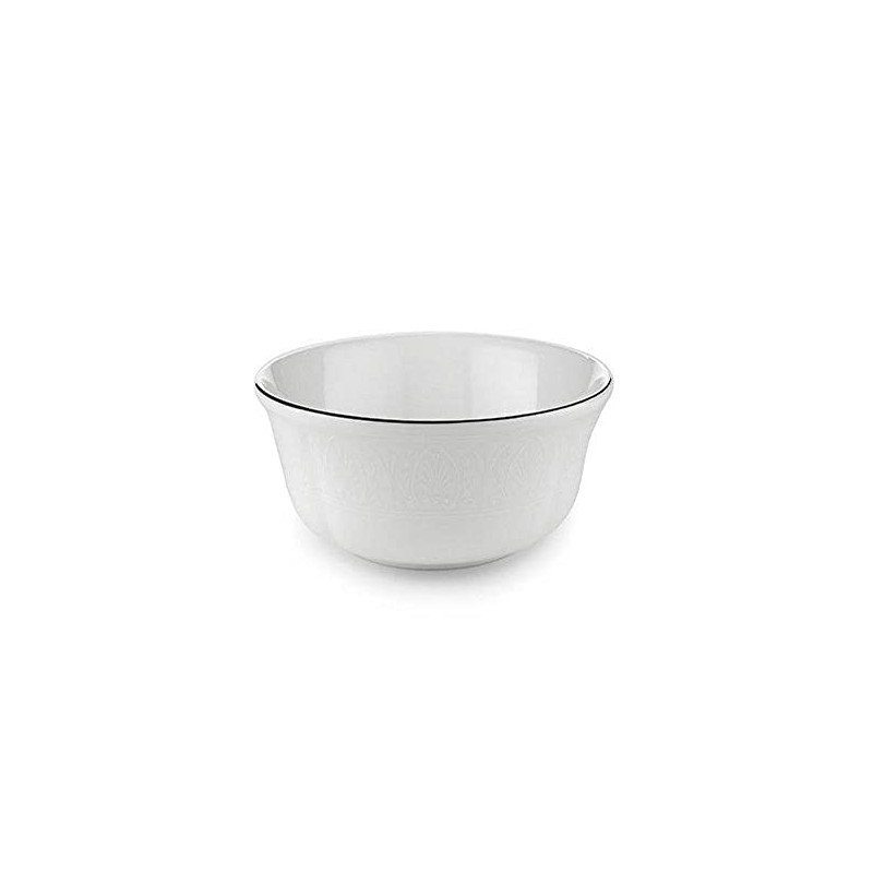 A monochromatic white palmetto pattern hugs the sides of the Hannah Platinum All-Purpose Bowl. Trimmed in precious platinum, this dishwasher-safe bowl is made from crisp white durable bone china, and adds a fresh sophistication to any soup or salad.
